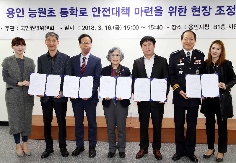 이는 이날 용인시청 지하1층 시민사랑방에서 박은정 국민권익위원회 위원장과 정찬민 용인시장, 홍기석 용인교육지원청 교육장, 김상진 용인동부경찰서장, 주민대표 등 20여명이 참석한 가운데 열린 ‘능원초 통학로 안전대책’ 관련 현장 조정회의에 따른 것이다.