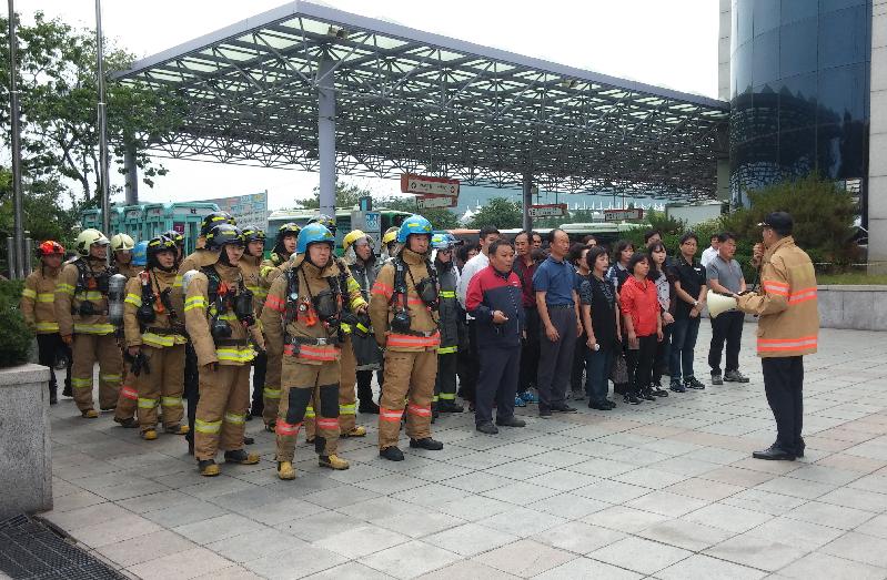 | 국민행동요령 숙지, 화재 대피 훈련 사진. |