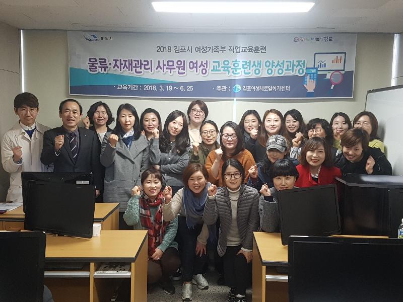김포시(시장 유영록)는 지난 19일 전왕희 경제환경국장 및 교육 훈련생 등 25명이 참석한 가운데 김포새일센터의 2018년 첫 번째 직업 교육 훈련 과정인 물류‧자재 관리사무원 양성과정 개강식을 개최했다.