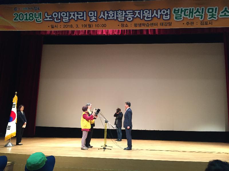 김포시(시장 유영록)가 2018년 노인일자리 및 사회활동지원사업 발대식을 19일 평생학습센터 대강당에서 성황리에 개최했다.