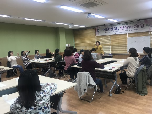 평택시 송탄보건소(소장 강봉원)는 아토피·천식예방사업의 일환으로 관내 아토피 환아 및 환아 부모 등 40여명이 참여하여 가정 내 아토피 피부염증 완화와 보습 관리에 활용할 수 있는『아로마테라피 허브연고 만들기』를 지난 19일 보건소 3층 보건교육실에서 운영했다.