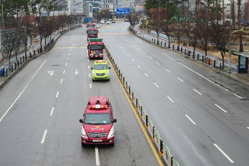 이날 훈련은 소방차 출동로 확보의 중요성을 알리고 시민들의 소방차 양보의식을 향상하기 위해 소방공무원, 의용소방대, 경찰, 시장 관계자 등 50여 명의 인원과 10대의 차량이 참여한 가운데 진행되었다.