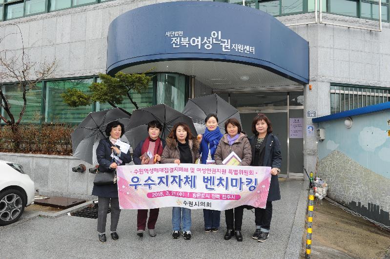 수원시의회 수원역 성매매집결지폐쇄 및 여성인권지원 특별위원회(위원장 최영옥) 위원과 관련부서 공무원 14명은 21일 전주시 도시재생 현장에 대한 벤치마킹에 나섰다.