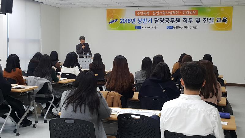 교육은 주민등록 및 인감·본인서명사실확인제도 업무처리지침, 법령 개선사항 등의 직무교육과 외부강사 초청으로 친절 마인드 향상을 위한 민원감동 실천 솔루션 교육이 진행됐다.