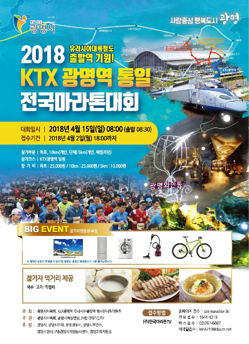 광명시와 광명시체육회 주최로 열리는 KTX광명역 통일 전국마라톤대회는 유라시아대륙철도의 출발역으로 육성하고 KTX광명역세권과 광명동굴을 전국에 널리 알리기 위해 펼쳐진다.
