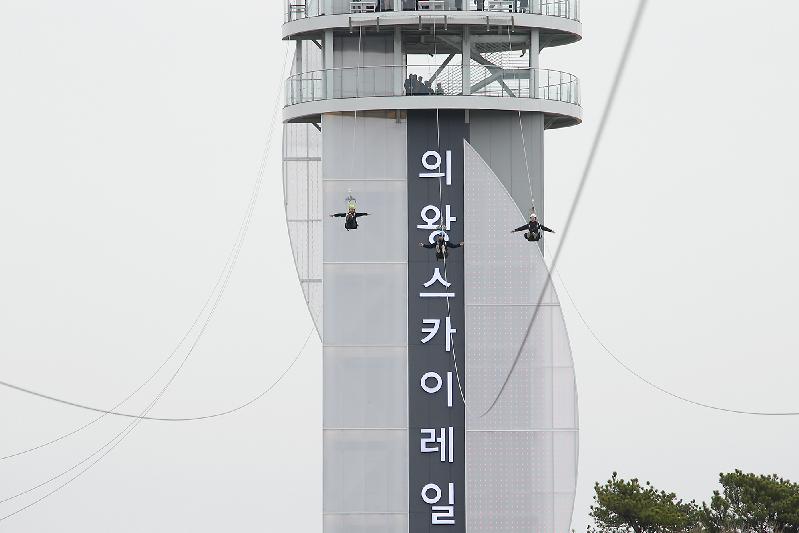 오는 4월 18일 개장을 앞두고 있는‘의왕 스카이레일’은 자연학습공원 내 41m 높이의 타워에서 왕송호수공원 레일바이크 매표소까지 350m를 시속 80㎞의 아찔한 속도로 하강하며, 주변의 왕송호수와 철새 등 아름다운 주변 경관을 만끽할 수 있다.