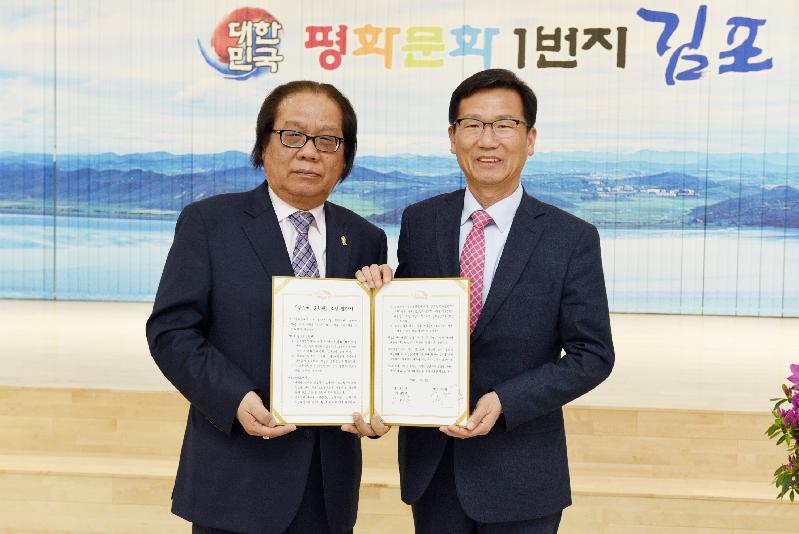 이날 김포시청 대회의실에서 열린 체결식에는 구자룡 시인과 문학계 인사 등 20여 명이 참석했다.
