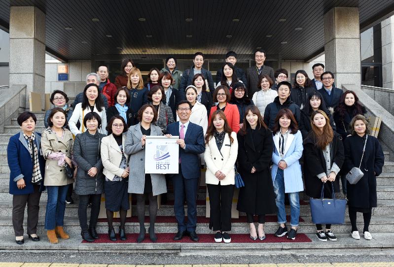 김포시가 “2017년도 공중위생서비스평가” 최우수업소 영업주를 대상으로 최우수업소 지정표지판 수여 및 위생서비스 교육을 지난 22일 시청 본관2층 상황실에서 진행했다.