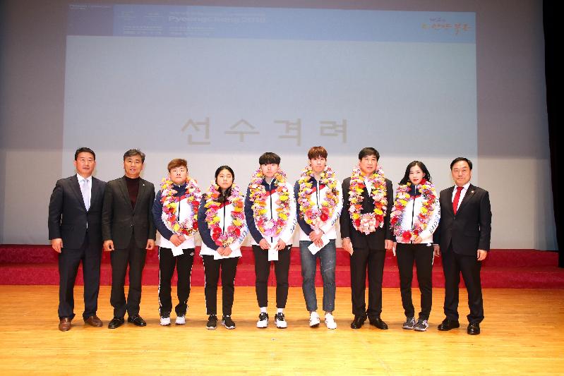 이 날 행사에는 여자쇼트트랙 3,000m 계주에서 금메달을 딴 김예진 선수, 쇼트트랙 남자 500m에서 은메달을 획득한 황대헌 선수, 여자아이스하키의 김희원, 정시윤 선수, 북한이탈주민이자 장애인으로 언론의 이슈를 모은 패럴림픽 대회 아이스하키 동메달리스트 최광혁 선수가 함께했다.
