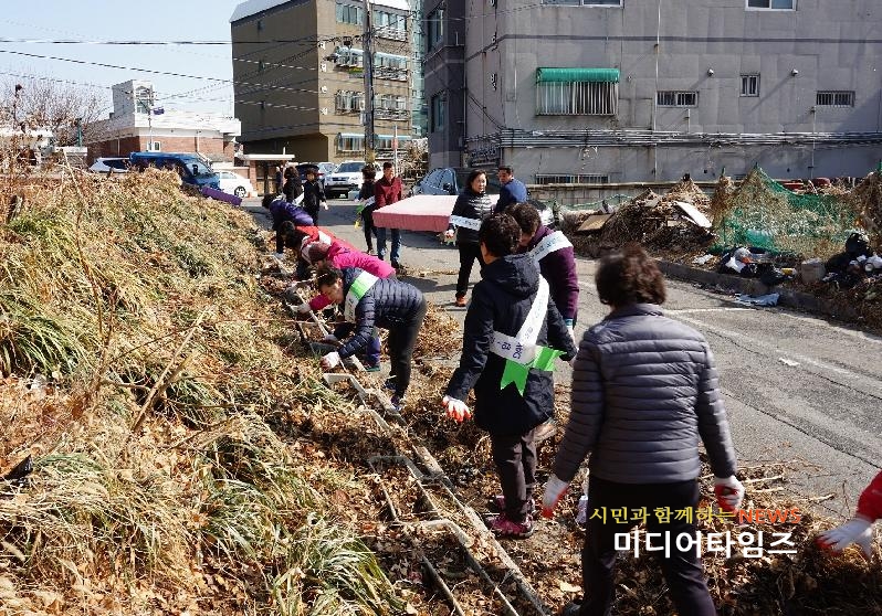 [미디어타임즈=문상수 기자] 인천남구 주안2동 주민센터는 지난 22일 통장자율회 등 주민 40여 명이 참여, 쓰레기 불법투기지역을 정비하고 봄꽃을 심었다.이날 주민들이 정비한 주안동 539번지 일대는 지난해 12월 주안1구역 재개발구역 이주로 폐가구, 가재도구 등 불법쓰레기 상습투기가 심각한 지역이다.이날 주민들은 쓰레기 3t을 수거하고 봄꽃 1천본을 심었다.주안2동 관게자는 “주민들의 지속적인 관심이 깨끗한 환경을 조성하고 유지할 수 있다”며 “동 주민센터에서도 재개발조합과 함께 깨끗한 동네 만들기에 노력하겠다”고 말했다.