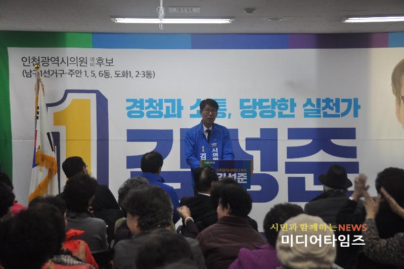 [미디어타임즈=문상수 기자] 더불어민주당 김성준(52) 인천광역시의원 예비후보가 선거사무소 개소식을 열고 본격적인 경선대비에 들어갔다. 이날 행사에는 지역주민 및 당원, 각계각층 원로, 박남춘 국회의원, 인천시장 김교흥, 홍미영 예비후보 등 800여명이 입추의 여지없이 방문하여 김성준 예비후보의 출마를 축하하고 격려하였다. 특히 지난 5년간 주안노인문화센터장으로 근무했던 인연으로 지역 어르신 및 지역 주민이 대거 참여하여 눈길을 모았다.김 예비후보는 ‘2016년 10월부터 2017년 3월까지 이어진 촛불집회의 결과로 문재인 민주정부가 탄생하는 과정에서 정의로운 시민의 힘을 확인할 수 있었다며, 이제는 지역이 바뀔 때’라고 주장했다. 시민이 주인되는 자치분권, 시민이 행복한 인천형 분권복지 김 예비후보는 ‘지역의 문제와 원인, 그 해결책은 지역 주민이 가장 잘 알고 있다’면서 시민이 주인되는 자치분권의 실현을 주장했다. 또한 현재 사회복지체계가 중앙정부의 지침에만 의존하는 실정을 비판하며 시민이 행복한 인천형 분권복지실현을 위해 앞장서겠다는 포부를 밝혔다.김 예비후보는 자신의 선거구인 남구 주안1, 5, 6동, 도화1, 2·3동의 현안에 대해 적극적인 관심을 보이며 지역의 문제와 그 해결책을 찾는 과정에서 주민의 말을 경청하고 소통하는 실천가가 되겠다고 다짐하였다. 지역공약으로는 ▲노인과 아동, 장애인, 여성이 실감하는 안전 확보 ▲교통약자들의 보행권을 보장 ▲인천시민의 문화향유권을 보장 ▲태양열을 이용하여 에너지를 생산하는 프로젝트를 진행 등 다양하고 구체적인 내용으로 제시했다.이날 개소식에 참여한 지순녀(70세)씨는 ‘김성준 예비후보가 주안노인문화센터장으로 있을 때 어르신 한 분 한 분을 친부모 못지않게 진심으로 대하는 것을 보았다면서 그런 마음으로 시민을 위해 활동하기를 바란다’며 축하의 말을 전했다. 앞으로 김성준 예비후보는 각계각층의 주민들을 만나 지역현안을 경청하고 논의하며, 주민이 공감하는 해결책을 모색하기 위해 바쁜 걸음을 할 예정이다.한편 김성준 예비후보는 동국대학교와 인천대학교 정책대학원 사회복지학과를 졸업했으며 지난2월말까지 5년간 재직한 주안노인문화센터장을 사임하고 더불어민주당 중앙당 사회복지제도개선특별위원회 부위원장, 문재인 대통령후보 중앙선거대책위원회 넥스트대한민국 특별위원회 노인복지위원장을 활동을 하였으며, 이번 지방선거에 더불어민주당 인천광역시의원에 남구제1선거구(주안1,5,6동, 도화1,2·3동)로 출마를 선언한 정치 신인이다.김성준 시의원 예비후보프로필-인천시 남구 주안노인문화센터장(전).-인천시 노인복지관협회 부회장(전)-인천시 미추홀종합사회복지관 운영위원(현).-인천시 남구 학산나눔재단 이사(현).-한국백혈병소아암협회경인지회 이사(현).-민선6기 남구청 착한약속위원회 대표간사(전).-2017년 지역아동센터 평가위원.-더불어민주당 중앙당 사회복지제도개선특별위원회 부위원장.-더불어민주당 인천광역시당 고령사회정책특별위원회 위원장.-인천시자치분권민주지도자회의 노인분권복지특별위원장.-제19대 대통령선거 문재인후보 중앙선거대책위원회 넥스트대한민국 특별위원회 노인복지위원장.-제19대 대통령선거 문재인후보 중앙선거대책위원회 자치분권균형발전위원회 정책자문.-민주평화통일자문회의 자문위원.-대한민국 육군소령 전역.-동국대학교 졸업-인천대학교 정책대학원 사회복지학과 석사 졸업