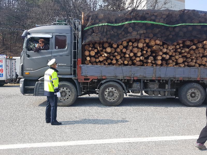 경찰과 관련부서 공무원으로 구성된 단속반은 이날 국도를 출입하는 목재류 적재 차량을 대상으로 적재 원목의 수종, 소나무류 반출확인증 소지 여부 등을 확인했다.