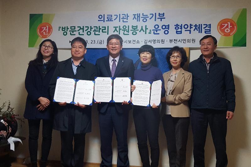 부천시는 지난 3월 23일 지역의료기관인 김서영의원, 부천의료복지사회적협동조합 부천시민의원과 함께 거동 불편자 및 취약계층을 위한 ‘방문건강관리 자원봉사’ 운영 협약을 체결했다.