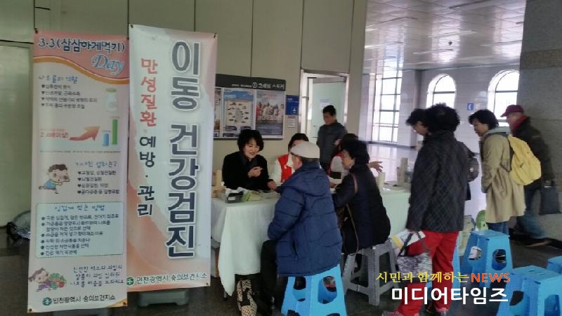 | 제물포역사에서 이동건강검진 및 저염캠페인 사진. <ⓒ미디어타임즈> |