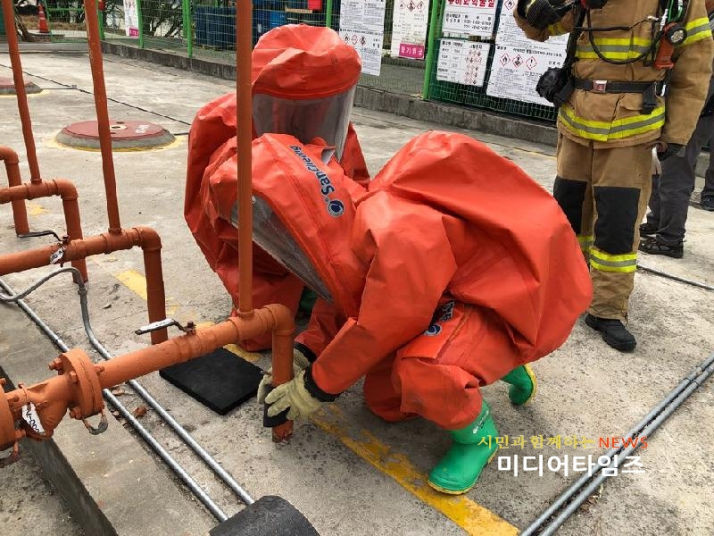 | 벽산페인트 화학사고 대응능력 강화훈련 사진. <ⓒ미디어타임즈> |