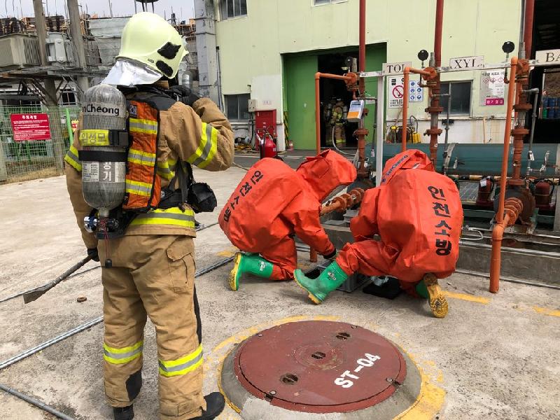 인천서부소방서, 벽산페인트 화학사고 대응능력 강화훈련 실시