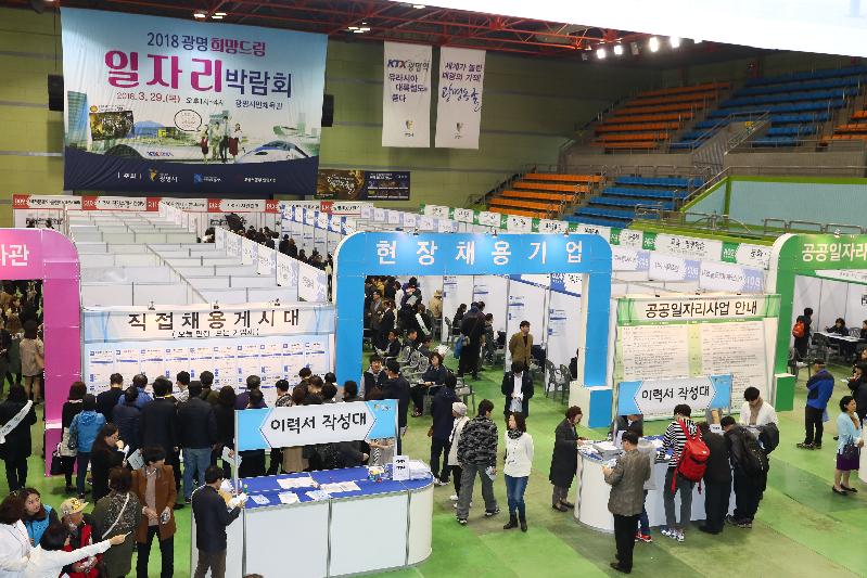 광명시와 경기도, 고용노동부 안양지청이 공동 주최한 ‘2018년 광명 희망드림일자리박람회’가 지달난 29일 광명시민체육관에서 성황리에 열렸다.