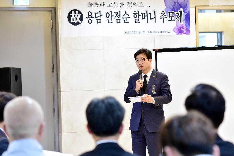 이어 “안 할머니는 지병으로 몸져누우신 순간까지도 할머니의 마지막 소원인 일본 정부의 진심어린 사죄 한마디를 듣기 위해 끝까지 희망의 끈을 놓지 않으셨다”며 “하지만 평생의 소원이었던 일본 정부의 진심어린 사과는 끝내 받지 못하고 눈을 감으셨다”고 안타까워했다.