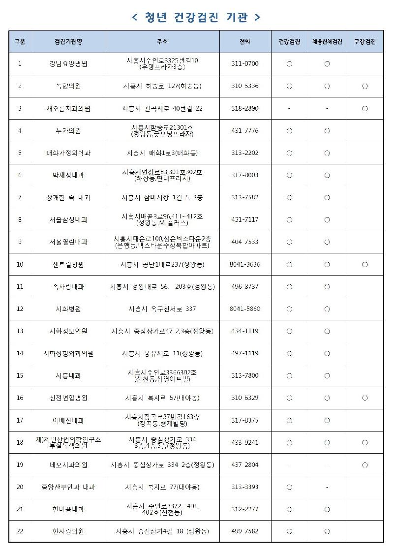 | 청년건강검진 병원 목록. <사진=시흥시청 제공> |