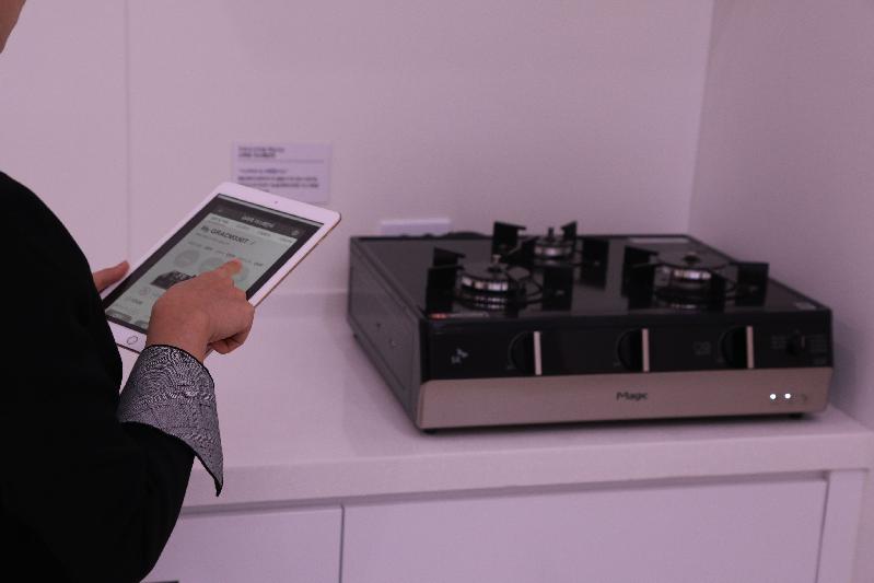 | 성남시청 2층 종합홍보관 내 스마트홈 체험존에 가스레인지의 타이머 기능, 잠금 기능 등 조정하고 선보이고 있다. <사진=성남시청 제공> |