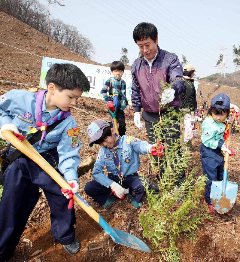 이날 행사에는 정찬민 시장을 비롯해 공무원, 시민 등 1천여명이 참여해 이 일대 임도 주변 임야 1ha에 편백나무 1,500 그루를 심었다.