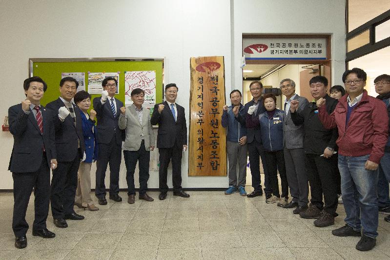 최근 전국공무원노동조합이 고용노동부로부터 노동조합 설립신고증을 교부받으며 합법적인 노조로 인정받은 것을 기념해 2일 의왕시 공무원노조가 의왕시청 내 지부 사무실에서 현판식을 가졌다. 이날 행사에는 김성제 의왕시장을 비롯해 전영남 시의회 부의장, 시·도의원이 참석해 현판식을 축하했다.신훈종 기자 hjsgreen77@hanmail.net