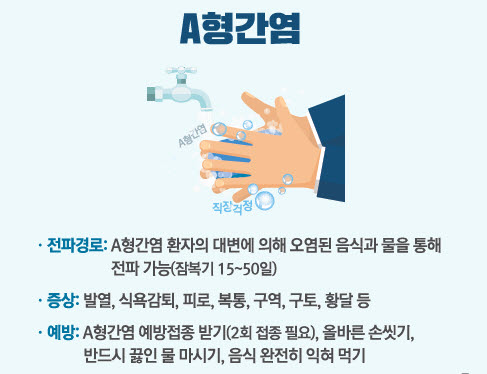 A형간염 예방을 위해서는 ▲끓인 물을 섭취 및 안전한 상수원 사용, ▲전반적인 위생 상태 개선, ▲올바른 손씻기 등 개인위생 준수 등 예방수칙을 준수해야한다. 특히 위생상태가 취약한 동남아나 아프리카 등 저개발국가로 장기 여행 또는 체류하는 경우 또는 만성간질환자의 경우에는 A형간염 예방백신을 접종할 것을 권고한다. 이옥수 기자 oksu813@naver.com