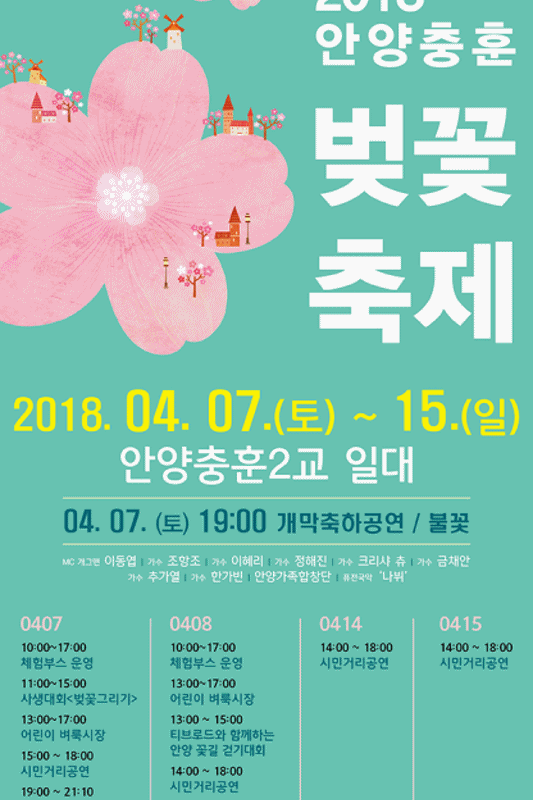 | 안양충훈벚꽃축제 포스터 및 벚꽃길 모습 에니메이션. |