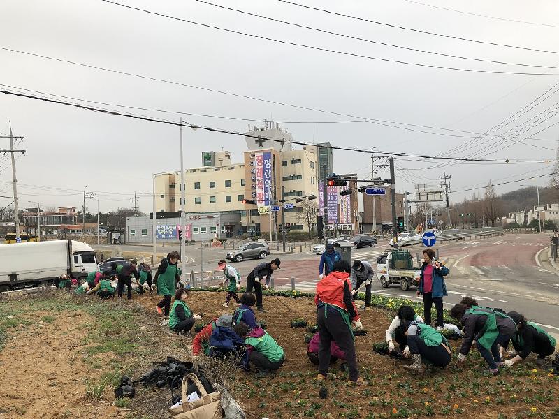 김포시 통진읍 새마을부녀회(회장 방영희)는 지난 3일 48번국도 가로대형화분 및 도사리 쌈지공원에 팬지 등 봄꽃 6,000여본을 식재했다.
