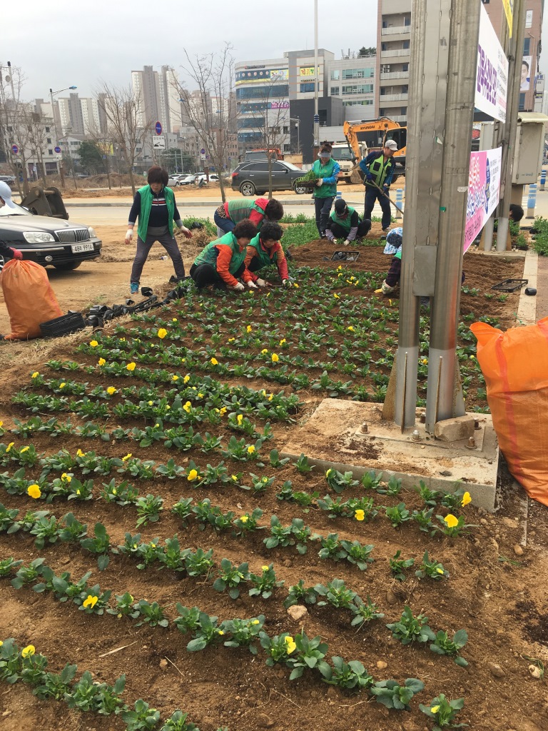 양촌읍행정복지센터 화단 및 주변 거리에 팬지, 비올라, 석죽 등 15,000본을 식재함으로써 양촌읍을 아름답게 가꾸어 주민들에게 아름다운 공간을 제공하여 볕드는 마을 양촌에 어울리는 화사한 봄기운을 불어넣었다.