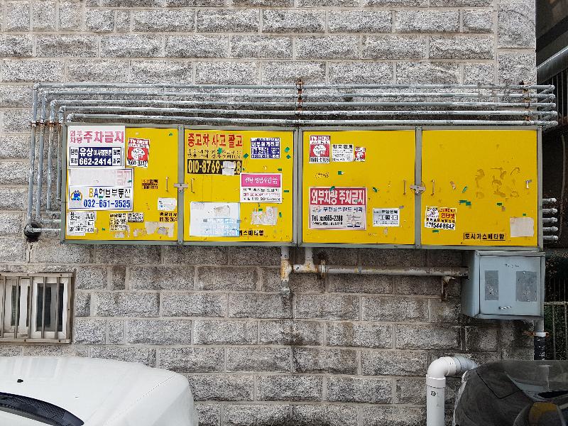 | 불법광고물로 지저분함 가스 메타함. <사진=부천시청 제공> |