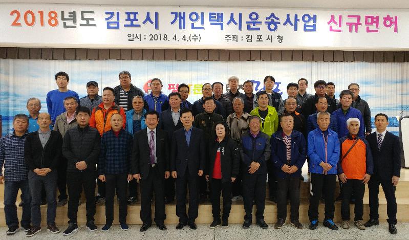 김포시는 지난 4일 시청 본관 3층 대회의실에서 신규면허 대상자 및 관계자들이 참석한 가운데 2018년도 개인택시운송사업 신규면허 수여식을 가졌다.