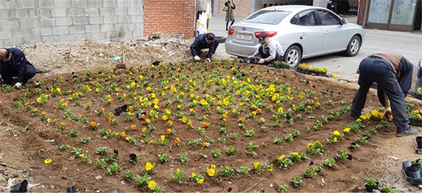 | 신장1동 봄꽃 식재 실시.<사진=평택시청 제공> |