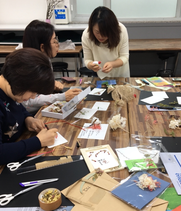 1회차 교육은 업사이클링의 이해와 재활용 종이를 이용한 마른 꽃 카드 만들기를 10여명의 위원이 함께 참여했으며, 2회차는 플라스틱의 이해와 헌그릇으로 천연가습기 만들기, 3회차는 해양온난화의 이해와 청바지를 이용한 악세사리 만들기, 4회차는 자신만의 업사이클링을 공유하고 버려지는 헝겊과 허브로 천연방향제 만들기를 진행한다.