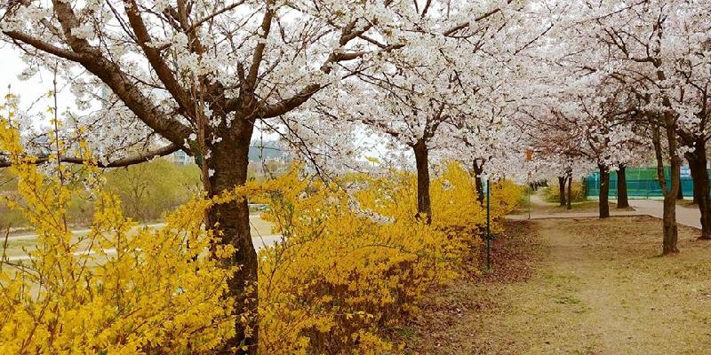 지독히도 추웠던 겨울이 지나 대한민국을 대표하는 생태하천인 오산천과 맑음터공원에도 봄이 찾아왔다. 봄의 전령인 산수유를 필두로, 오산시의 시화인 매화, 개나리, 벚꽃 등 여러 수종의 꽃이 개화하여 봄빛으로 물들이고 있다.