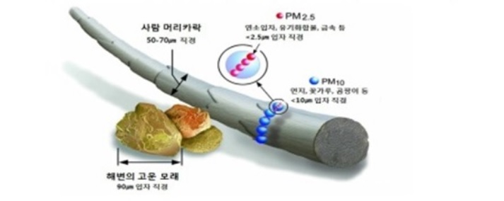 ○ 미세먼지(PM 등 먼지 직경에 따라 구분 PM은 1,000분의 10mm보다 작은 먼지이며, PM은 1,000분의 2.5mm보다 작은 먼지로 머리카락 직경(60mm) 1/20~1/30 크기보다 작은입자)나. 발생원인
