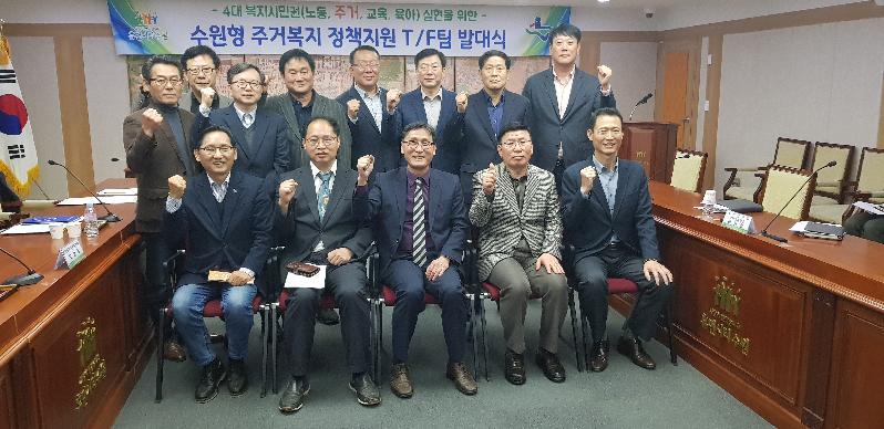 수원시 맞춤형 주거복지 정책을 수립하게 될 ‘수원형 주거복지 정책지원 태스크포스팀’이 지난 6일 시청 상황실에서 발대식을 하고 첫발을 뗐다.
