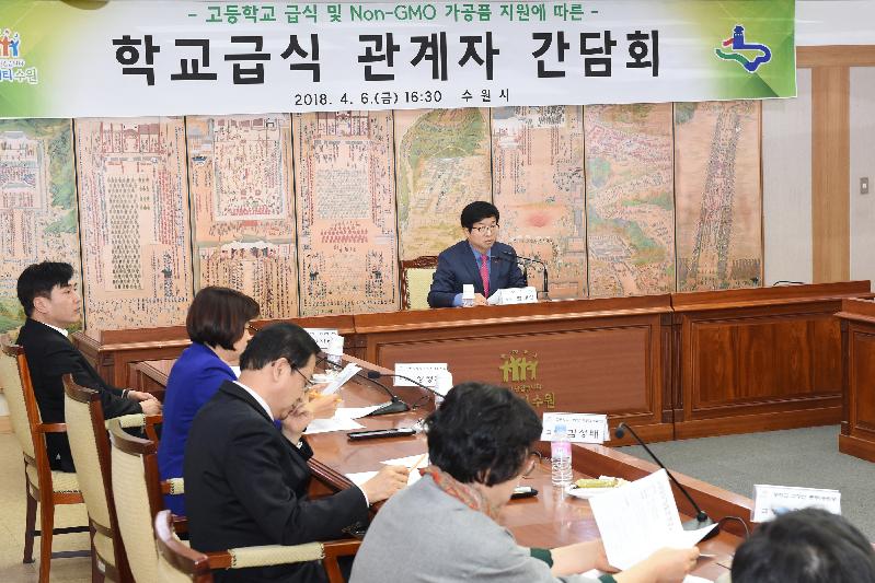 수원시는 6일 수원시청 상황실에서 ‘학교급식 관계자 간담회’를 열고, ‘GMO 없는 안전한 학교급식 지원’과 ‘고등학교 무상급식 지원’ 등 시가 앞으로 추진할 학교급식지원계획에 대해 소개했다.