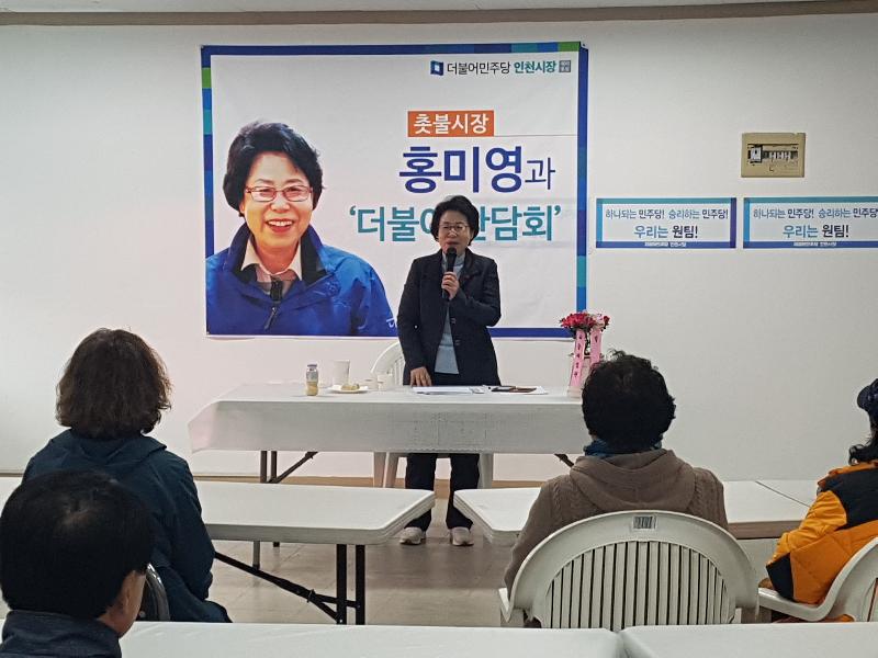 [미디어타임즈=문상수 기자] 홍미영 더불어민주당 인천시장 예비후보는 휴일을 맞아 8일 오후 강화군에서 민주당 지방선거 출마자들이 대거 참석한 가운데 ‘더불어간담회’를 개최하는 한편, 강화 주민들을 상대로 ‘공동 선거운동’을 벌였다.홍미영 인천시장 후보는 이날 강화풍물시장, 인삼센터 상인과 장을 보러 나온 시민 및 관광객에게 지지를 호소한 뒤 박이강 인천시의원 예비후보 사무실에서 강화 주민과 지방선거 출마자들을 대상으로 자신의 정치 철학을 소개했다.홍미영 시장 후보는 “강화는 캐면 캘수록, 까면 깔수록 더 속을 보고 싶고, 같이하고 싶은 애틋한 곳”이라며 “인천의 보물인 강화 분들의 고견을 듣기 위해 이 자리에 왔으니 허심탄회