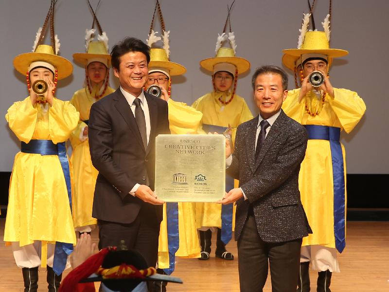 | 지난해 11월에 있었던 유네스코 창의도시 네트워크 가입기념식.<사진=부천시청 제공> |