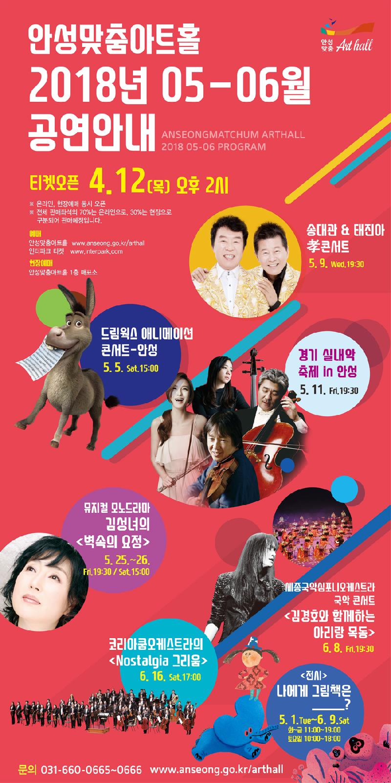오는 12일(목) 오후 2시 안성맞춤아트홀 5, 6월 기획공연 티켓이 오픈된다.