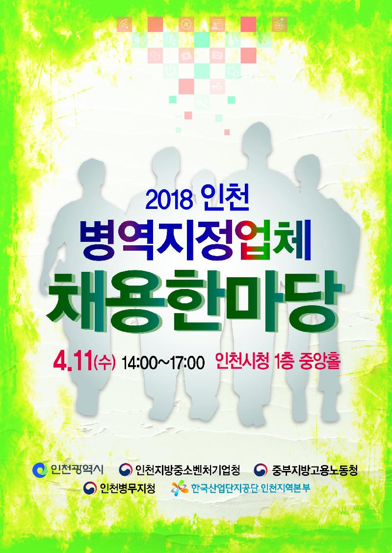 인천시는 오는 11일(수) 오후 2시, 인천시청 중앙홀에서 병역지정업체와 사회복무요원 소집대상자(병역의무자)를 위해「2018 인천 병역지정업체 채용한마당」을 개최한다.