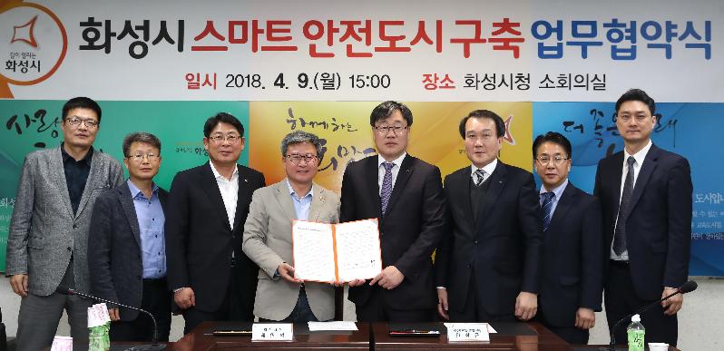 | 시청에서 스마트 안전도시 구축 업무협약을 체결.<사진=화성시청 제공> |