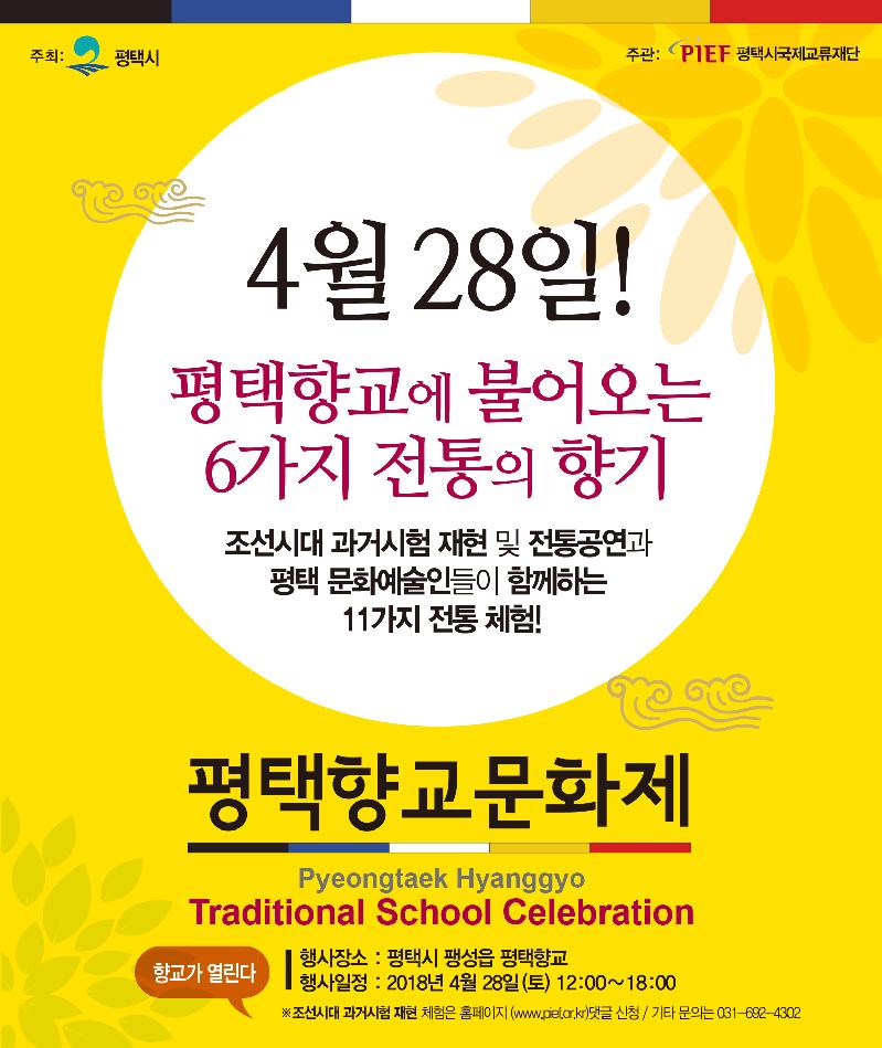 평택시국제교류재단은 4월 28일 토요일(12시-18시), 평택향교(평택시 팽성읍)에서 ‘평택향교 문화제’를 개최한다.