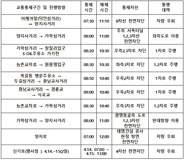 -오전 7시 ~ 오후 1시 광명시내 일부 차로 교통 통제