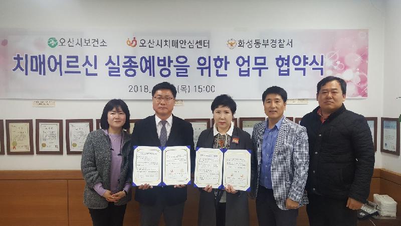 주요 협약 내용은 오산시 거주 치매 노인을 위한 지역사회 네트워크 구축 및 오산시치매안심센터“지문사전등록제”시행을 통한 치매노인 실종제로 사업 활성화 등이다..