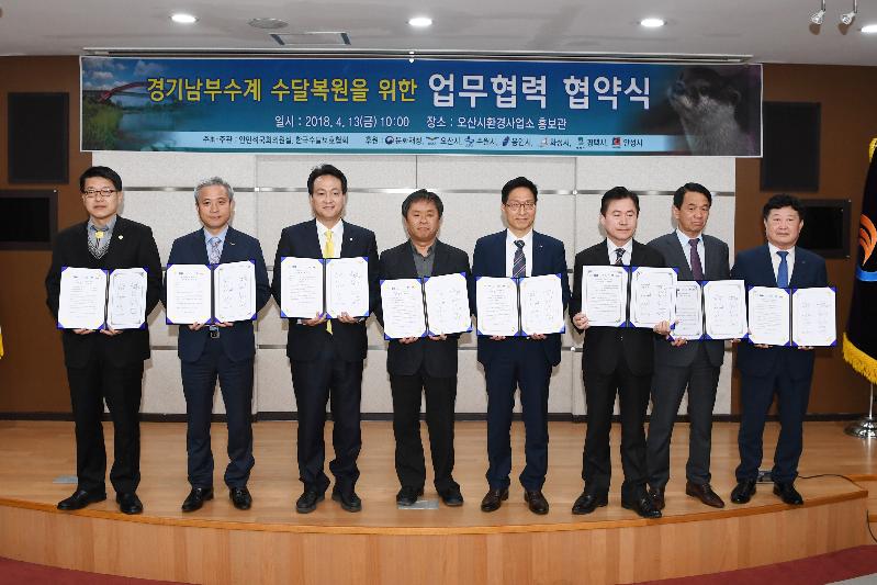 수원시와 용인·화성·오산·평택·안성시, (사)한국수달보호협회는 13일 오산시 환경사업소에서 ‘경기 남부 수계 수달 복원을 위한 업무 협력 협약’을 체결하고, 수달 복원을 위한 연구에 협력하기로 했다.