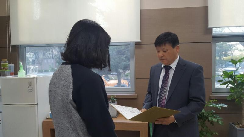 이날 전달한 장학금은 청소년지도위원협의회에서 신봉도시개발지구내 유휴농지를 활용한 주말농장 분양기금으로 마련한 것이다.