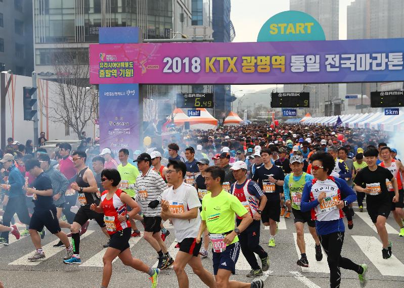 ‘2018 KTX광명역 통일 전국마라톤 대회’가 4,000여 명의 전국 마라토너와 자원봉사자가 참가한 가운데 지난 15일 KTX광명역 일원에서 성황리 개최됐다.