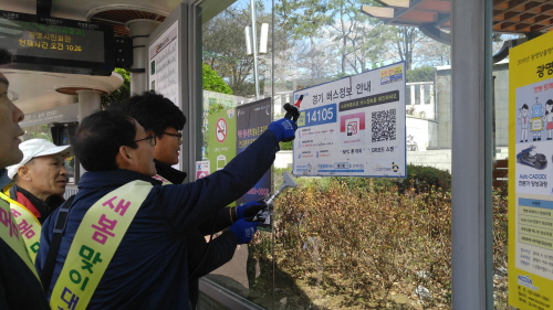 | 새봄맞이 건전 광고 문화 조성-버스승강장 불법광고물 제거. <사진=광명시청 제공> |